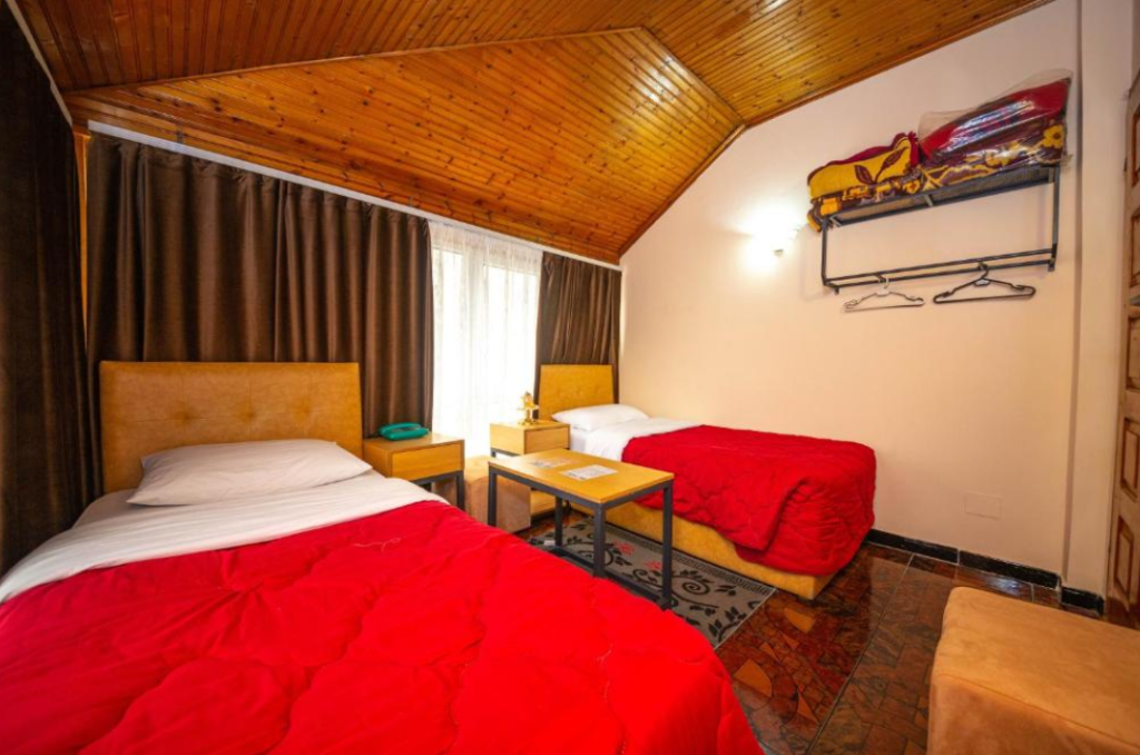 Air-conditioned room featuring cable TV, a small fridge and a private bathroom with shower, bidet and hairdryer.
