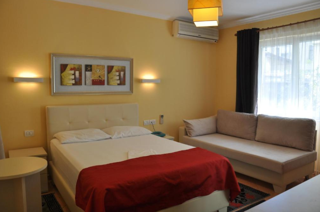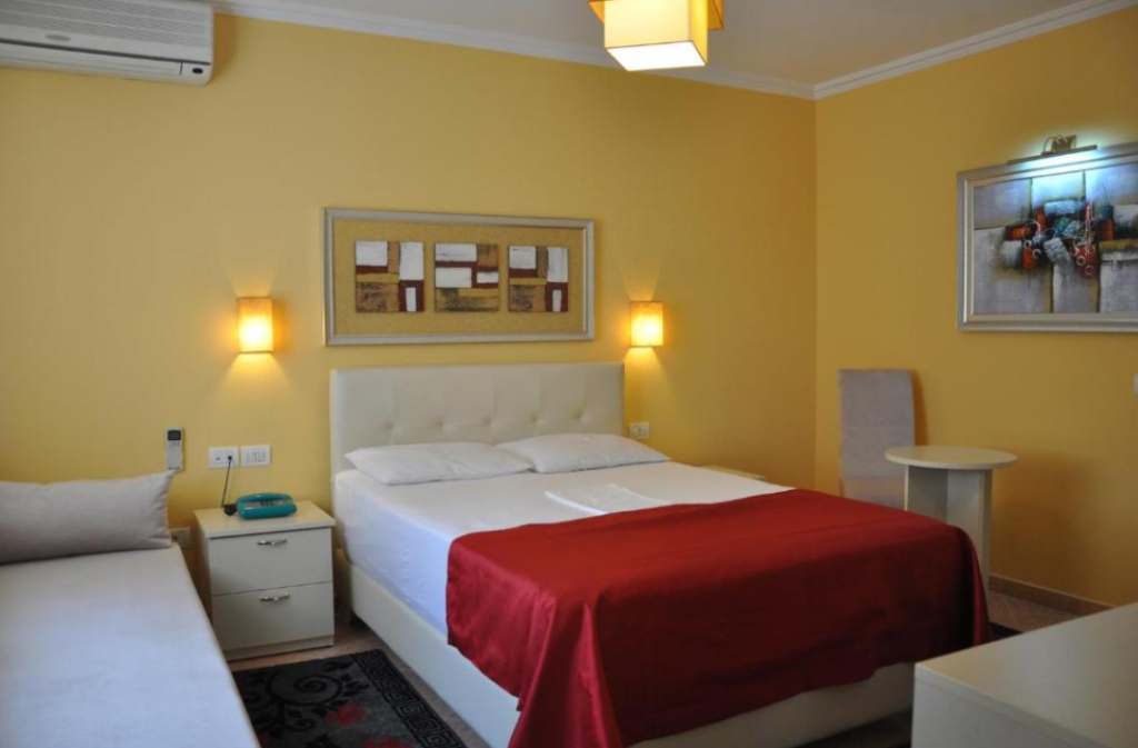 Air-conditioned room featuring cable TV, a small fridge and a private bathroom with shower, bidet and hairdryer.